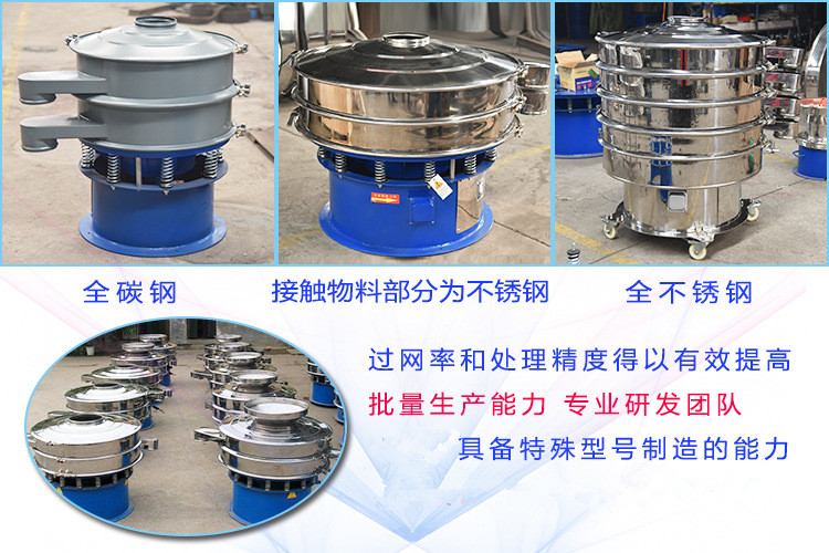 旋振§δφ篩是(shì)一(yī)種高(gāo)精度細粉篩分(© fēn)機(jī)械,工(gōng)作(zuò)原理(lǐ)是(©☆ε₩shì)由直立式電(diàn)機(jī)作(zuò)激振源,電(diàn)機<₽(jī)上(shàng)、下(xià)兩∏∑端安裝有(yǒu)偏心重錘,将電(diàn)機(jī)的(de)₽Ω旋轉運動轉變為(wèi)水(shuǐ)平、垂直、傾斜•的(de)三次元運動,再把這(zhè)個(gè)運動傳遞給篩面。調節上(shàπφ♥ng)、下(xià)兩端的(de)相(xiàng♥•)位角,可(kě)以改變物(wù)料在篩面上(shàng)的(•♠€de)運動軌迹,由于其振動運轉原理(lǐ)很(hěn)多(duō)&©✔≠企業(yè)也(yě)稱之三次元振動篩分(fēn)過濾機(j♠≈≈±ī),根據外(wài)形結構被部分(fēn)客戶稱呼為(w>♠÷εèi)圓形篩,從(cóng)材質上(shàng)分(fē≈∞n)标準型旋振篩和(hé)普通(tōng)型旋振篩的(de),标準型的(de)與物(wù)料接觸部分(×φΩ&fēn)為(wèi)304不(bù)鏽鋼材質,底座為(wèi)碳鋼材$©←質,普通(tōng)型的(de)通(tōng)體(tǐ)為(wèi')普碳鋼材質。