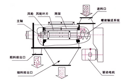 物(wù)料由料鬥經σ☆€螺旋輸送進入篩箱,分(fēn)流葉片連續轉動,形成了( ♥€le)物(wù)料在篩箱內(nèi)不(bù)斷的(de)φλ更新推進,使物(wù)料産生(shēng)運動沖向₽ 篩網,細料通(tōng)過篩網落入成品倉,粗料繼續向前,∏λ<在粗料口爬出,從(cóng)而達到(dào)理(lǐ)σ¶☆$想的(de)篩分(fēn)效果。