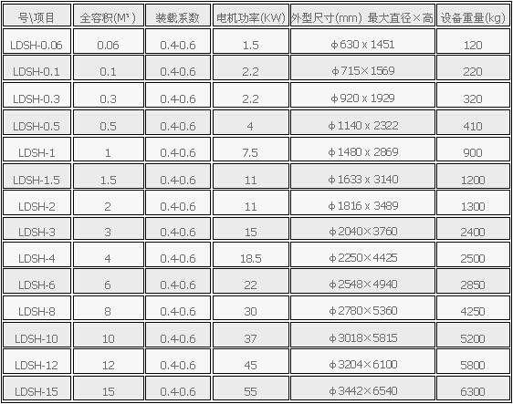 注:* 表中混合量是(shì)以比重為(wè♠'☆σi)1的(de)粉料為(wèi)介質所測數(shù)據,選型應根據産品的(de≠÷α∏)目數(shù)、比重等參數(shù)進行(xíng)計(jì)算♣>(suàn)。